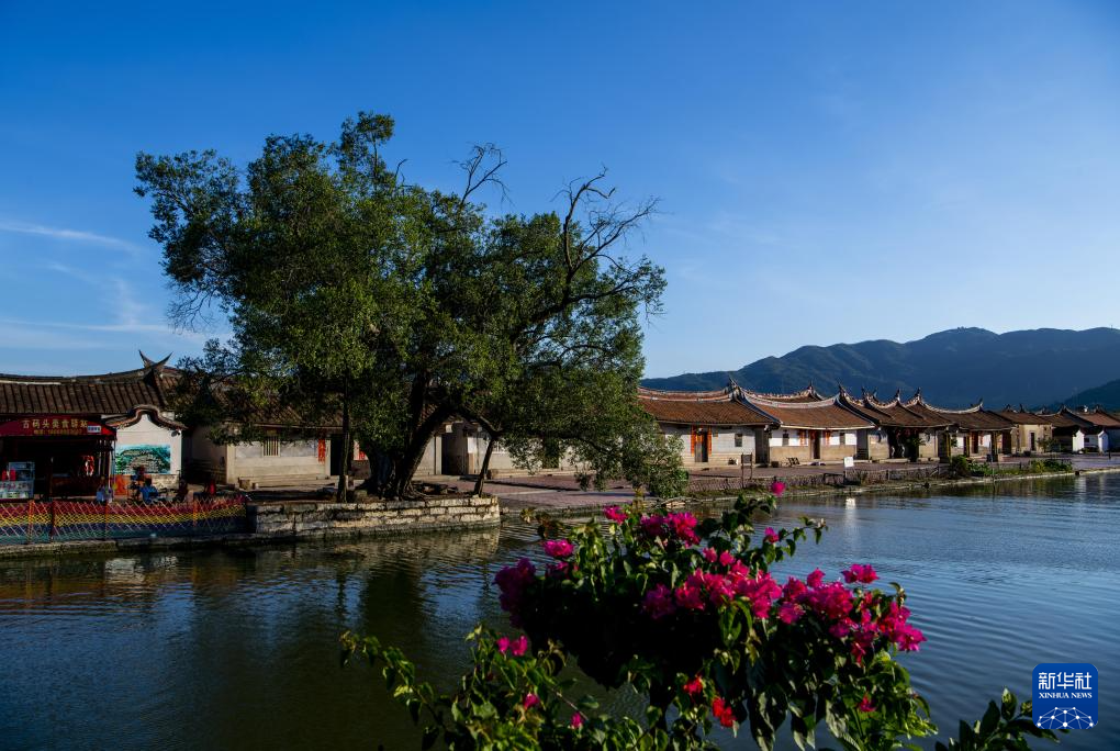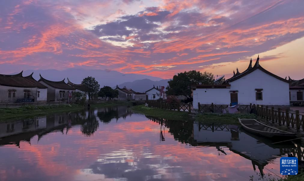 这是夕阳下的埭美水上古村景色(资料照片)。