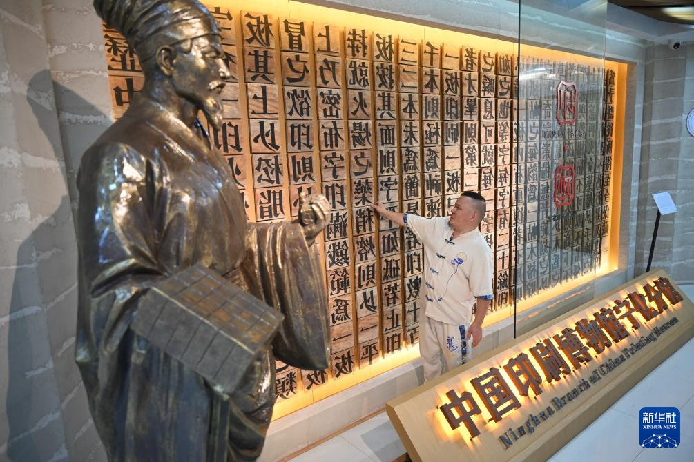7月19日,邱恒勇在中国印刷博物馆宁化分馆介绍木活字印刷术的历史。