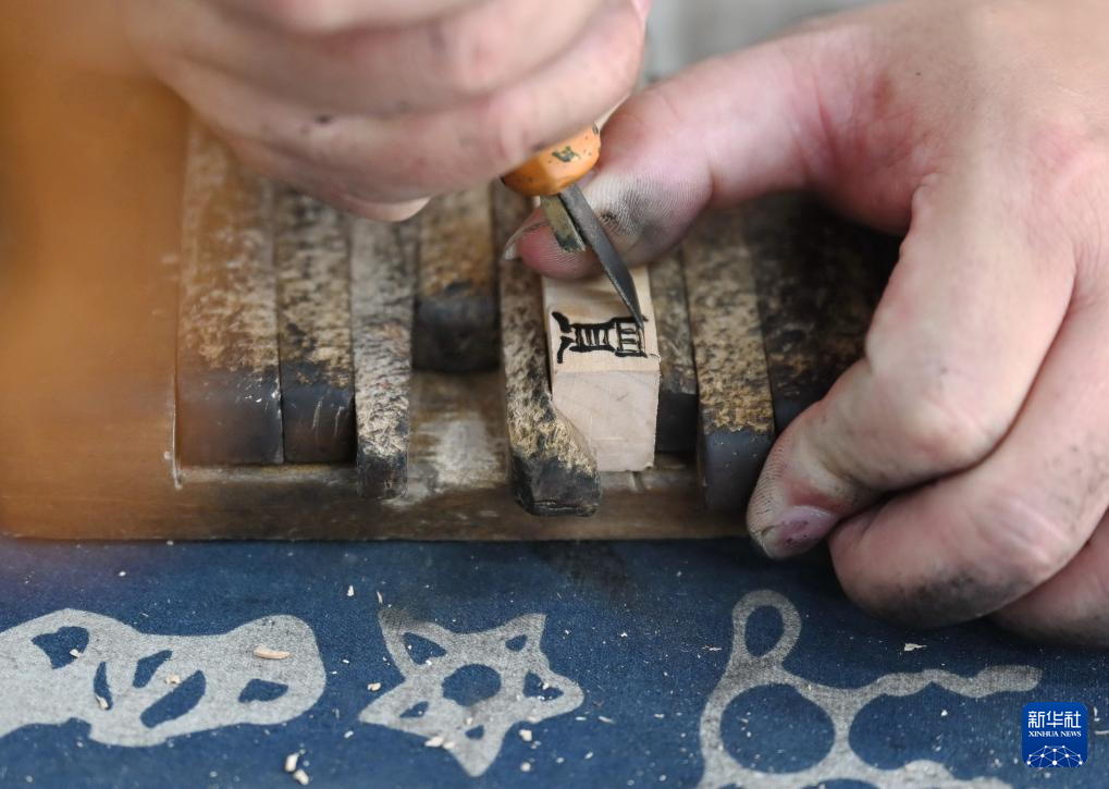 7月19日,邱恒勇展示他创作的木活字印刷的百福图。