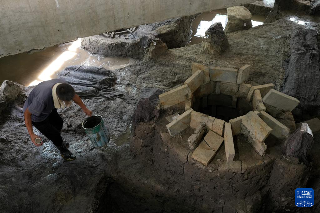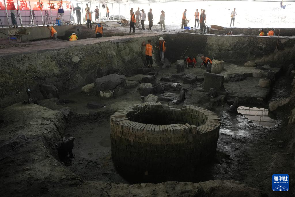 这是7月23日在稽中遗址考古发掘现场拍摄的一处水井遗址。