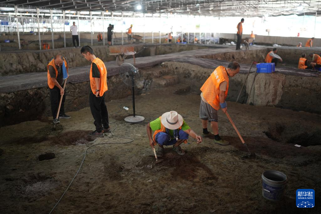7月23日,考古人员在稽中遗址考古发掘现场工作。