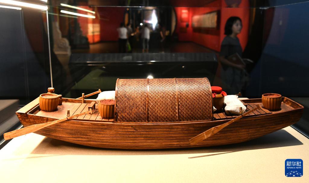 8月2日,游客在中国大运河非物质文化遗产展示馆内参观。