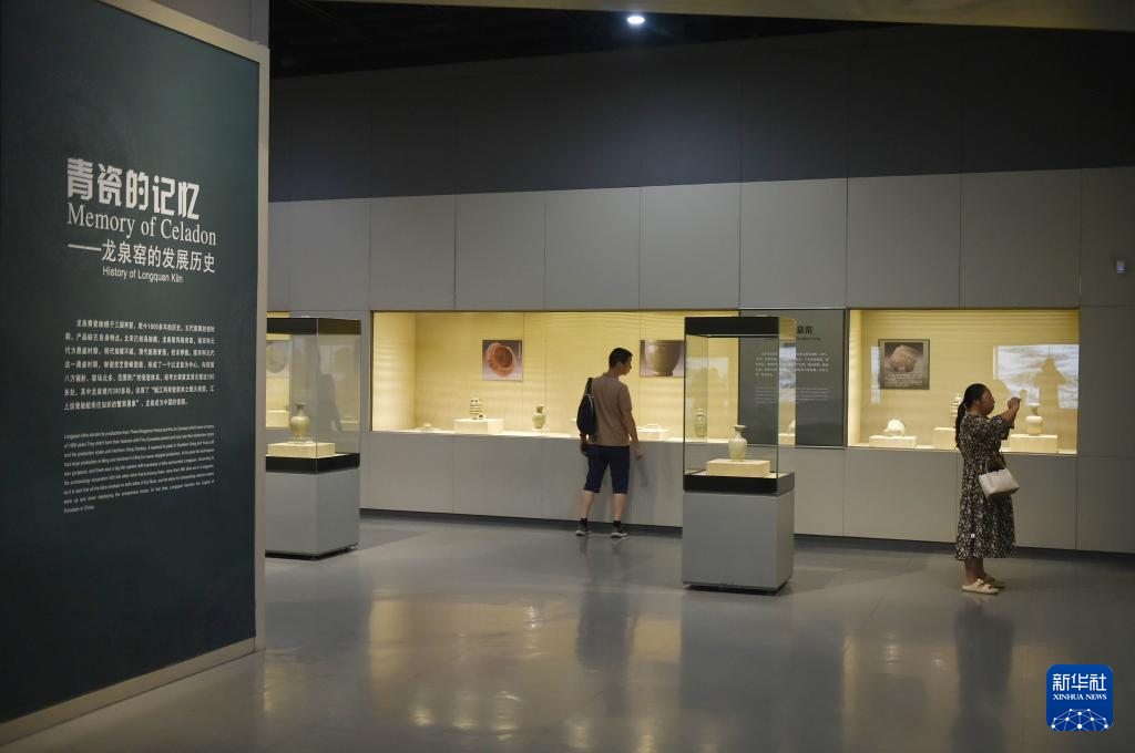 8月6日,游客在浙江龙泉青瓷博物馆参观。
