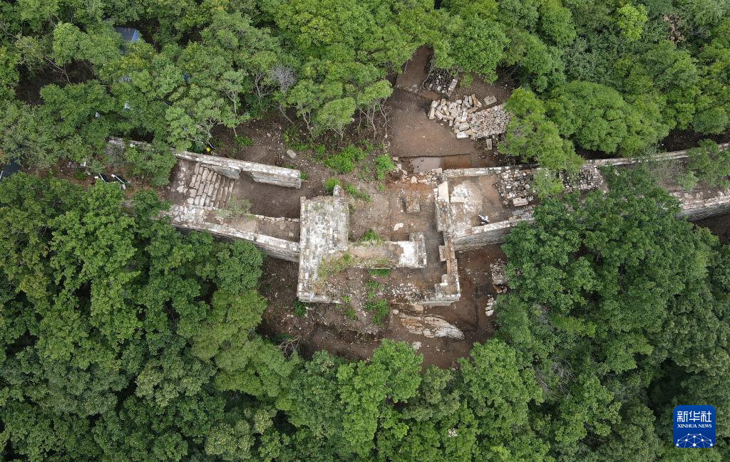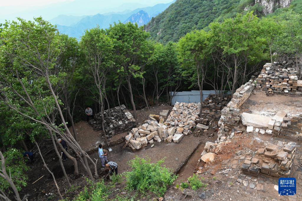 这是箭扣长城120号敌台考古现场(7月1日摄,无人机照片)。