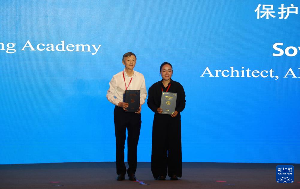 8月19日,敦煌研究院院长苏伯民(左)和柬埔寨吴哥世界遗产文化管理局保护与考古部建筑师索万林·孟出席合作备忘录交换仪式。