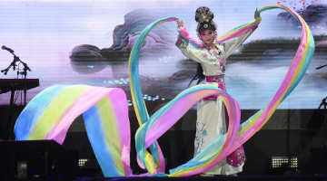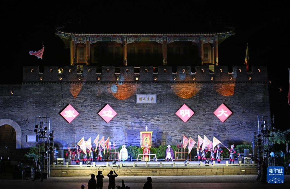 8月21日,游客在观看“大明边塞”之夜游黄崖关系列演出。