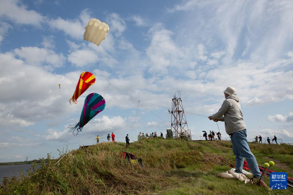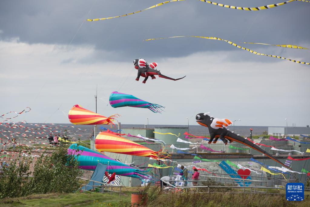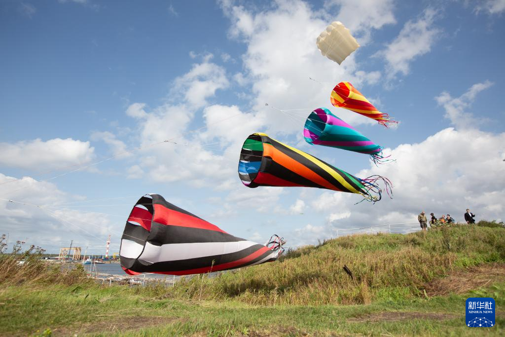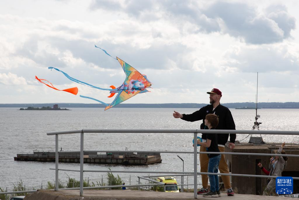 8月24日,风筝爱好者在俄罗斯圣彼得堡喀琅施塔得岛放风筝。