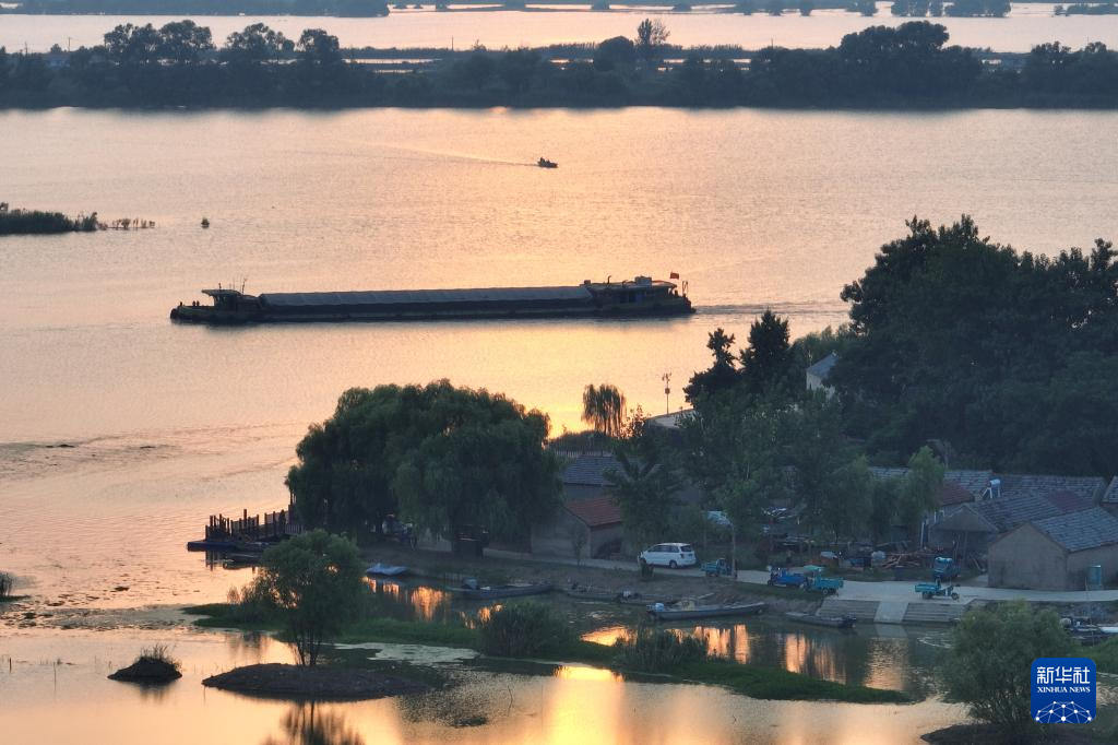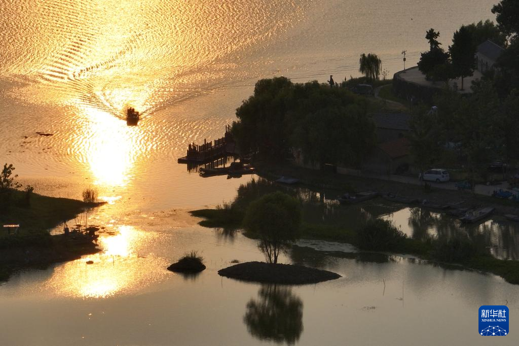 这是8月26日拍摄的江苏省淮安市洪泽区老子山镇龟山村夕阳景色(无人机照片)。