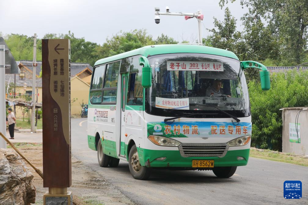 8月27日,一辆镇村公交车行驶在江苏省淮安市洪泽区老子山镇龟山村。2021年该村开通镇村公交线路,方便村民出行。