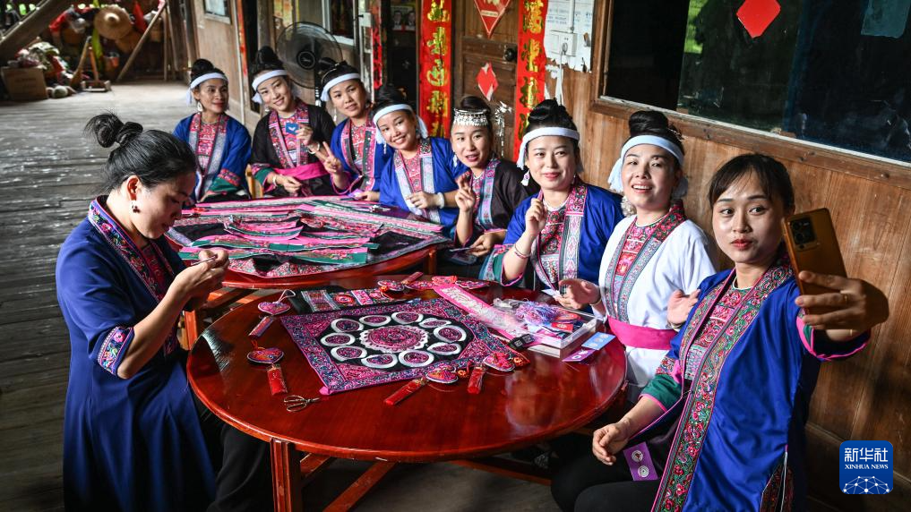 在广西三江侗族自治县,侗族刺绣是一种集纺织、印染、剪纸、刺绣于一体的传统手工艺,其绣品图案精美、色彩艳丽,成为助力侗乡民众增收的特色产业。