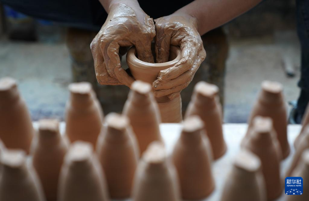 在位于江西省景德镇市善窑厂的车间里,李善明在进行拉坯(8月28日摄)。