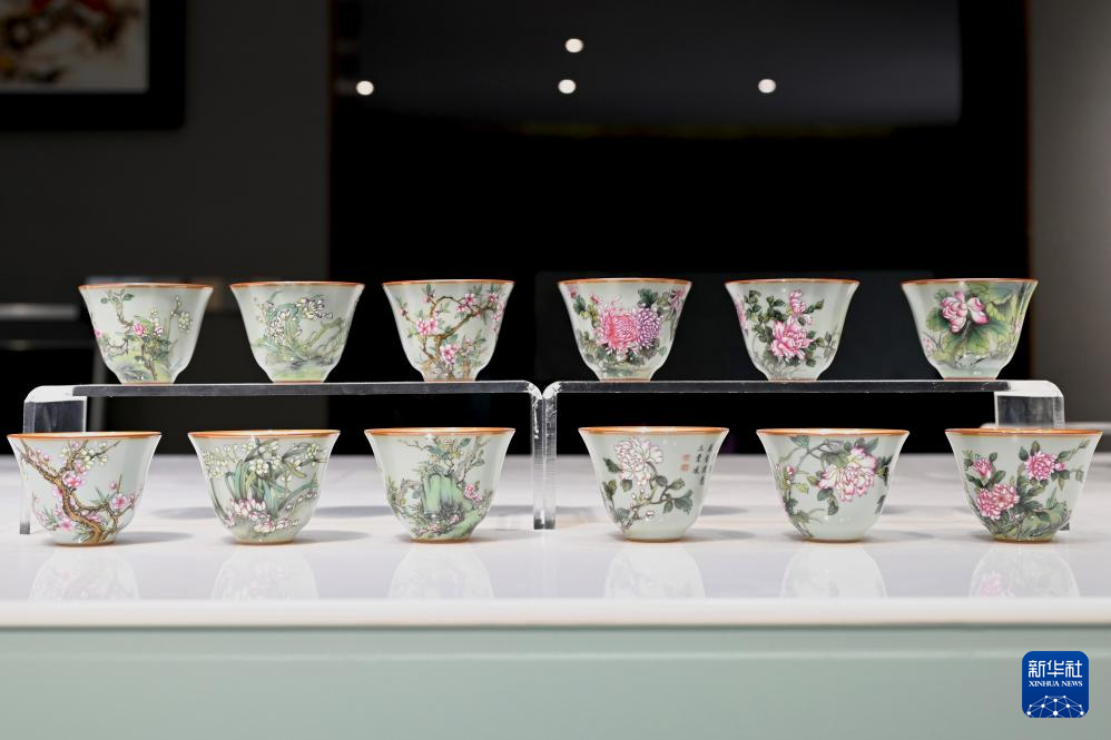 这是李善明烧制的汝瓷作品《十二花神》(8月28日摄)。