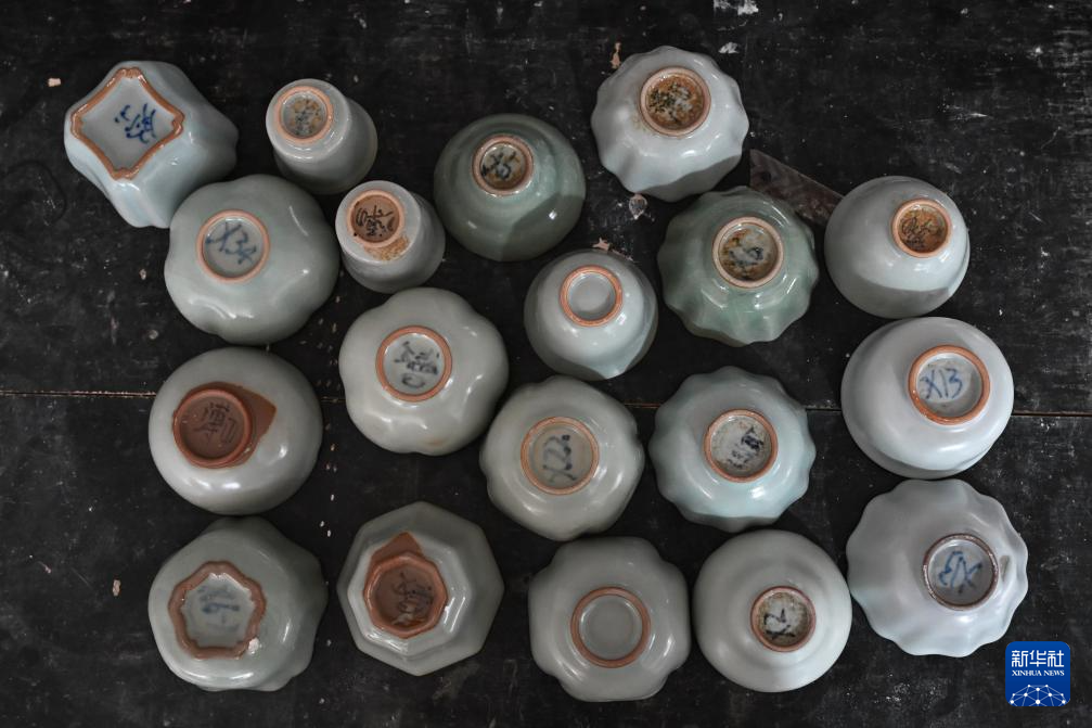 这是李善明反复研究烧制汝瓷时的试验品(8月28日摄)。