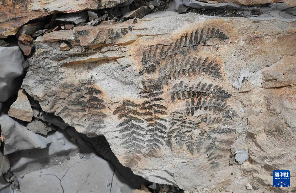 这是在内蒙古自治区乌达二叠纪植被化石产地发现的植物化石(资料图片)。新华社发