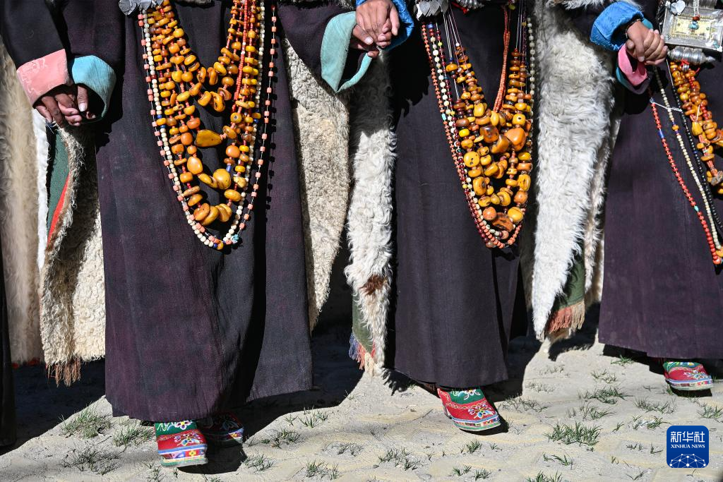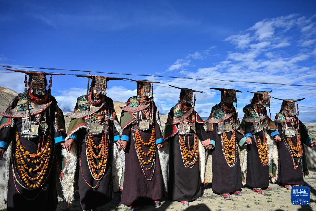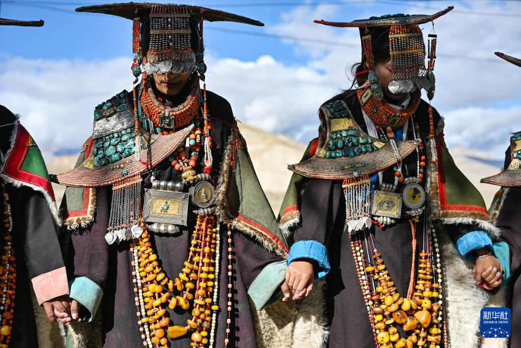 9月9日,在西藏阿里地区普兰县科迦村,村民身着普兰服饰表演宣舞。