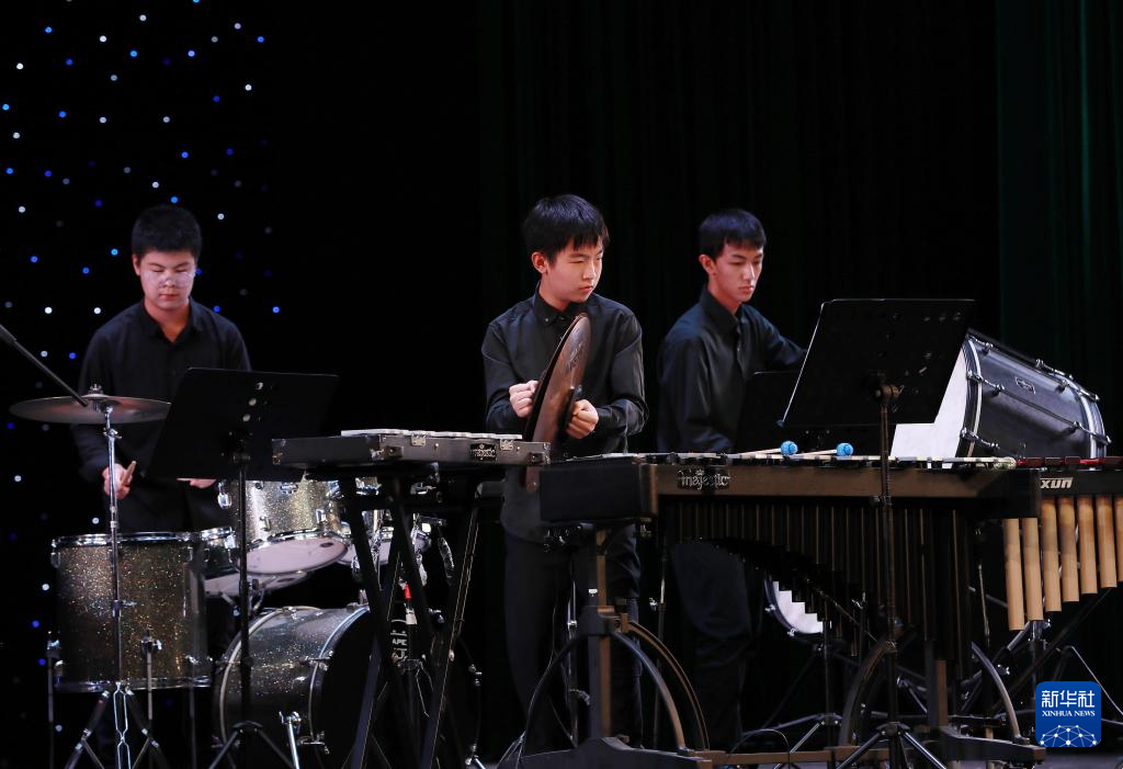 9月12日,广州市一一三中学的学生在美育节展演活动上演奏西洋乐。