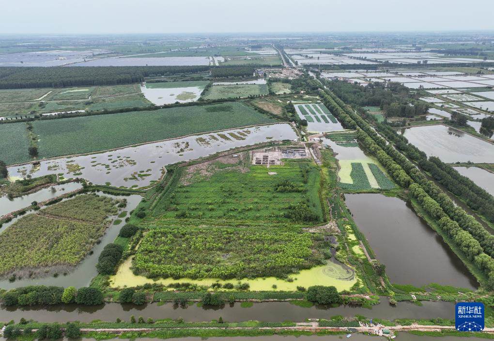 江苏兴化草堰港遗址及发掘区全景(无人机照片,资料照片)。