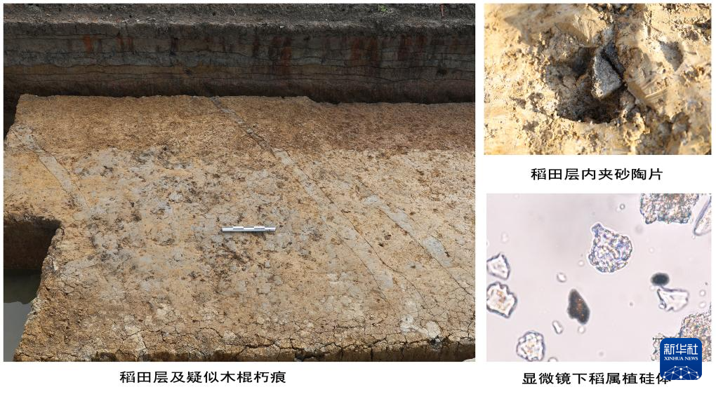 浙江衢州皇朝墩遗址早期稻田遗存及相关依据(拼版照片)。