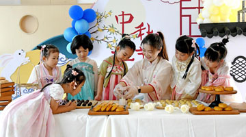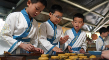 9月13日,在大运河奇妙夜中秋市集上展示的非遗产品。中秋市集上有北京“兔爷儿”、临清贡砖、洛阳大袖衫、苏州宋锦、宁波金银彩绣等大运河沿线的非物质文化遗产展示。