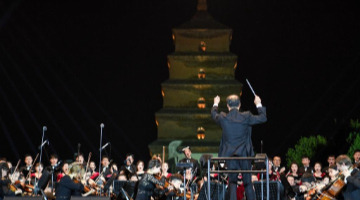 9月13日拍摄的大运河奇妙夜上传统舞蹈表演“捣练图”。