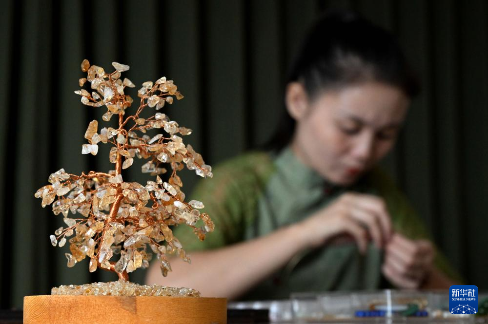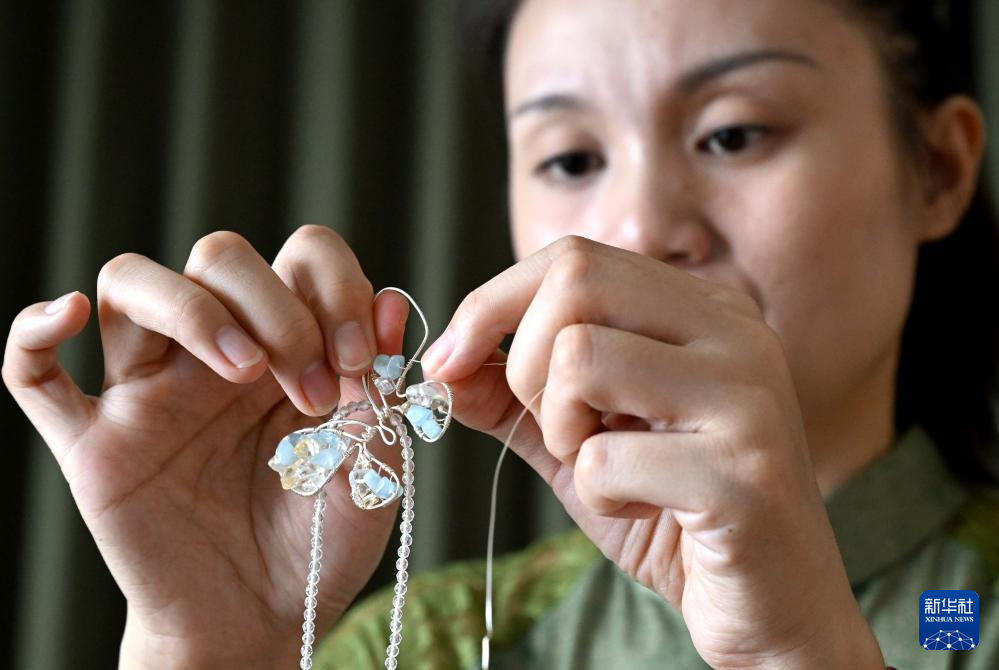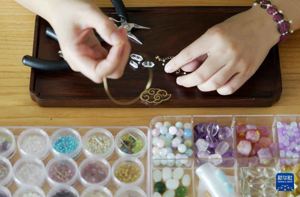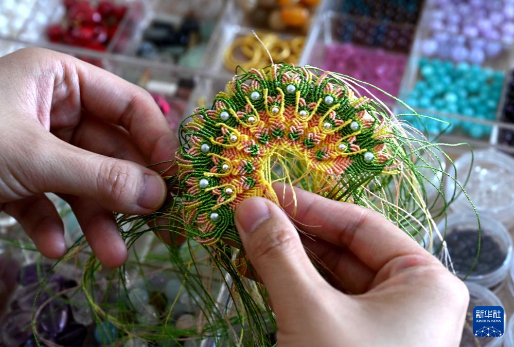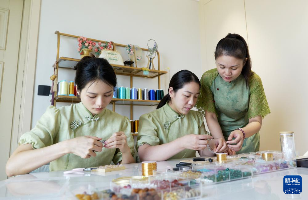 为了让更多人了解和传承辑珠技艺,楚蒙丹走进社区,教更多喜欢辑珠技艺的居民学习,她还通过直播授课的形式,让这项技艺进入更多人的视野。