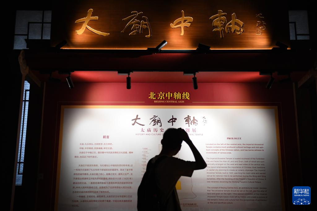 9月19日,游客在太庙享殿观看“太庙中轴:太庙历史文化专题展”。