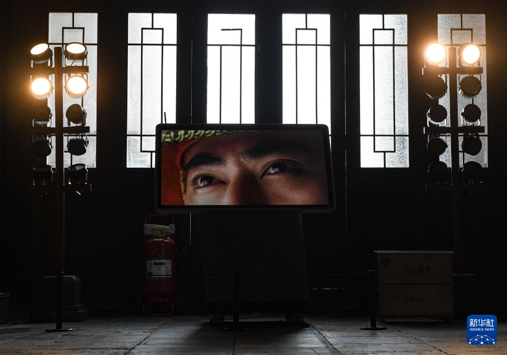 一部讲解古代祭祀流程的影片在太庙享殿内的“太庙中轴:太庙历史文化专题展”上播放(9月19日摄)。