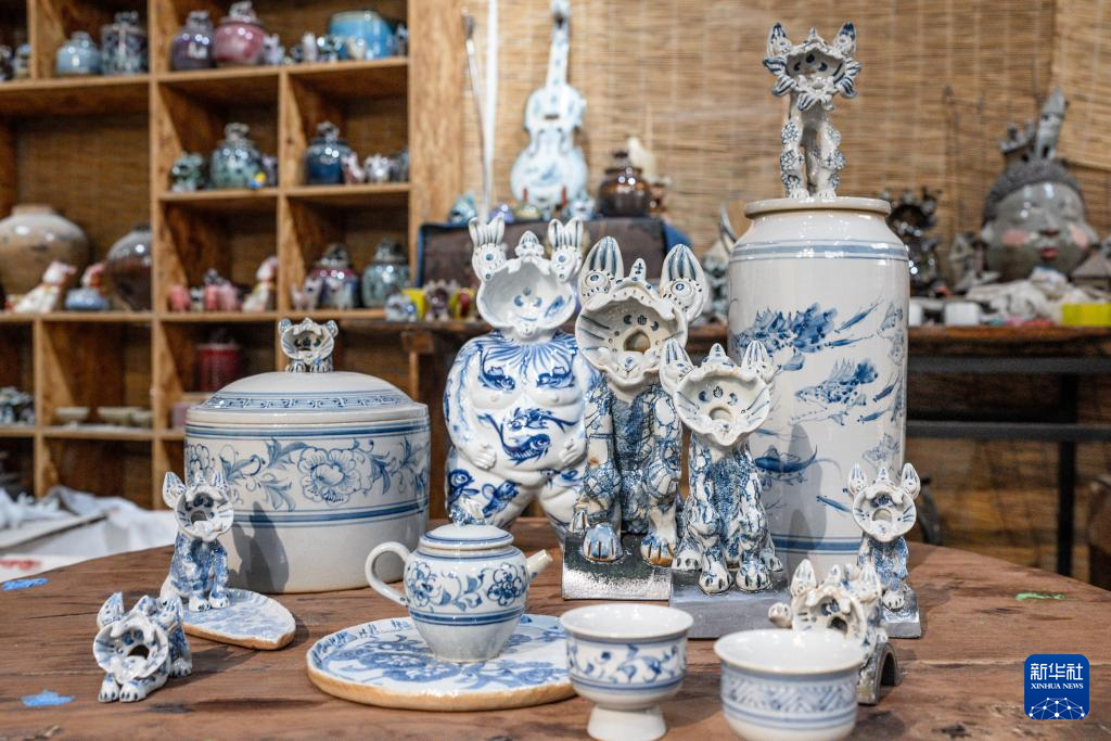 王子强制作的青花釉瓦猫(9月18日摄)。