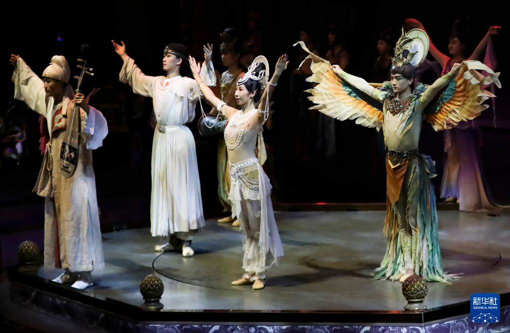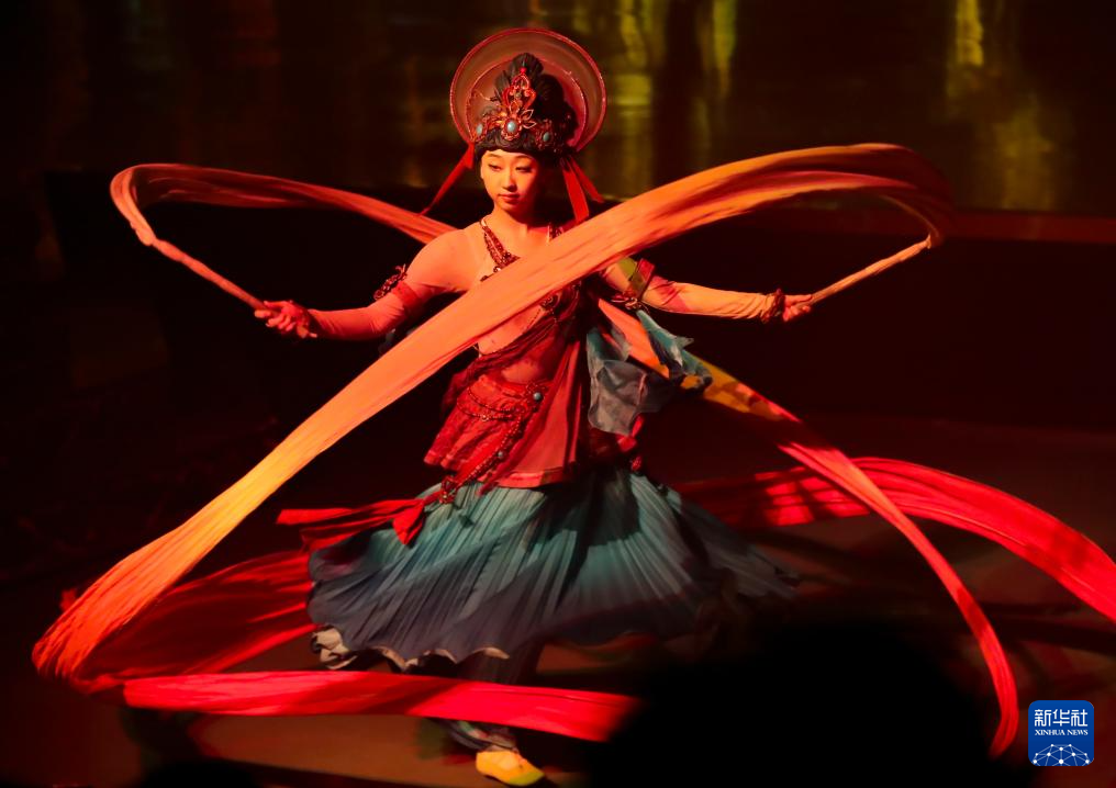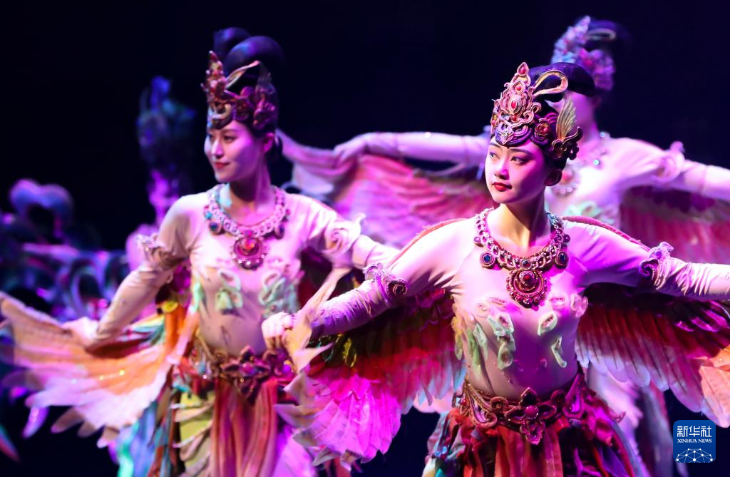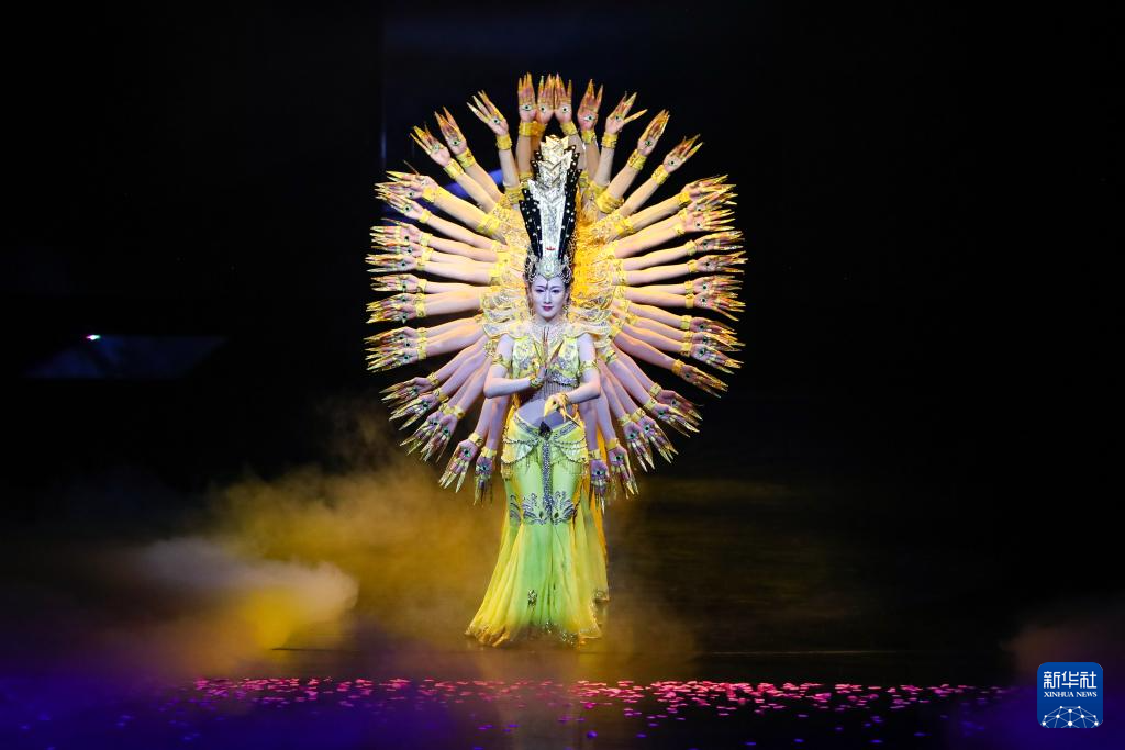 9月20日至22日,第七届丝绸之路(敦煌)国际文化博览会举行期间,《又见敦煌》《千手千眼》《乐动敦煌》等再现敦煌壁画乐舞盛景的“敦煌风”演艺剧目吸引众多观众走进剧场,沉浸式体验丝路古郡敦煌跨越千年的历史文化魅力。