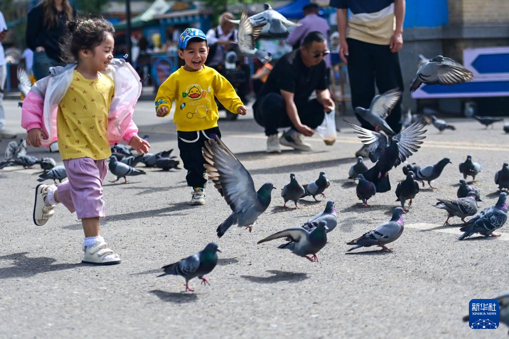 小朋友在新疆伊犁哈萨克自治州伊宁市喀赞其民俗旅游区游玩(5月11日摄)。新华社记者 丁磊 摄