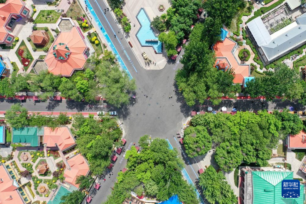 这是在新疆伊犁哈萨克自治州伊宁市拍摄的六星街景区中心广场(5月12日摄,无人机照片)。新华社记者 丁磊 摄