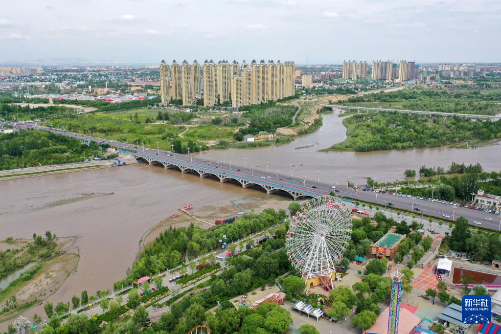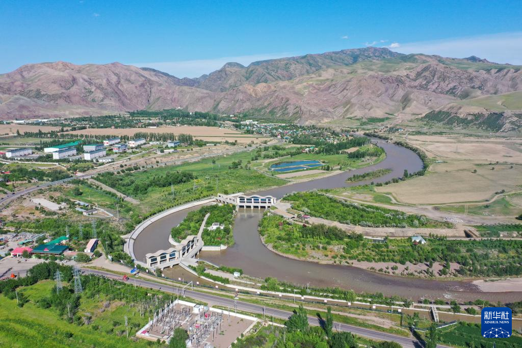 这是在新疆伊犁哈萨克自治州伊宁市拍摄的喀什河龙口,其前身为180多年前建造的湟渠(5月14日摄,无人机照片)。新华社记者 丁磊 摄