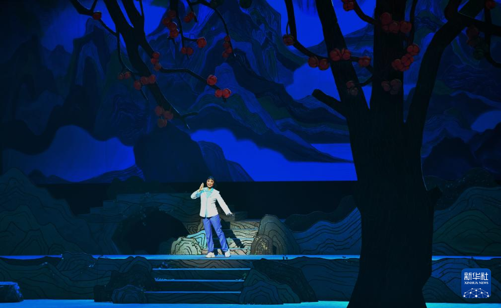9月27日晚,演员在河北梆子现代戏《山韵》中表演。