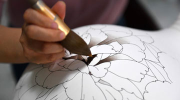 9月27日,在醴陵市一家陶瓷生产企业,工人在制作陶瓷彩绘。