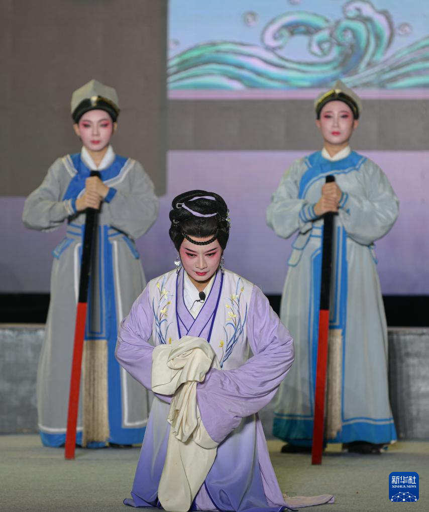 10月6日,“琼韵荟”琼剧精品艺术进社区展演在海南省海口市万绿园举行。来自海南省琼剧院一团的演员们为观众献上了古装琼剧《巡按审妻》。观众在观看琼剧过程中,感受非遗文化的魅力。