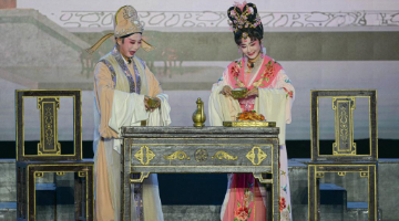 在山东省临沂市郯城县郯国古城景区,演员在表演“变脸”(10月1日摄)。