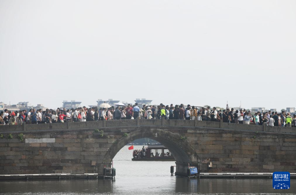 杭州西湖断桥上人流如织(10月2日摄)。