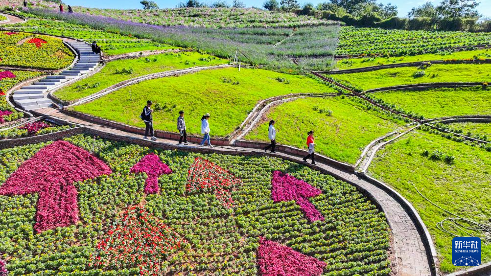 游客在河北省迁西县旧城乡雨花谷景区游玩(10月2日摄,无人机照片)。