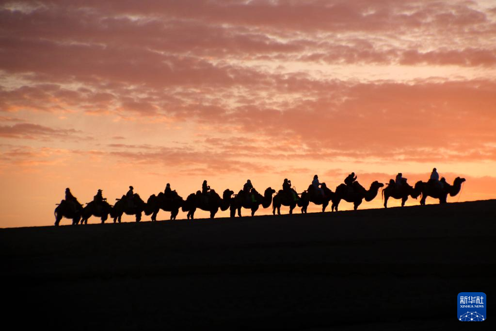 游客在甘肃省敦煌市鸣沙山月牙泉景区游览(10月4日摄)。