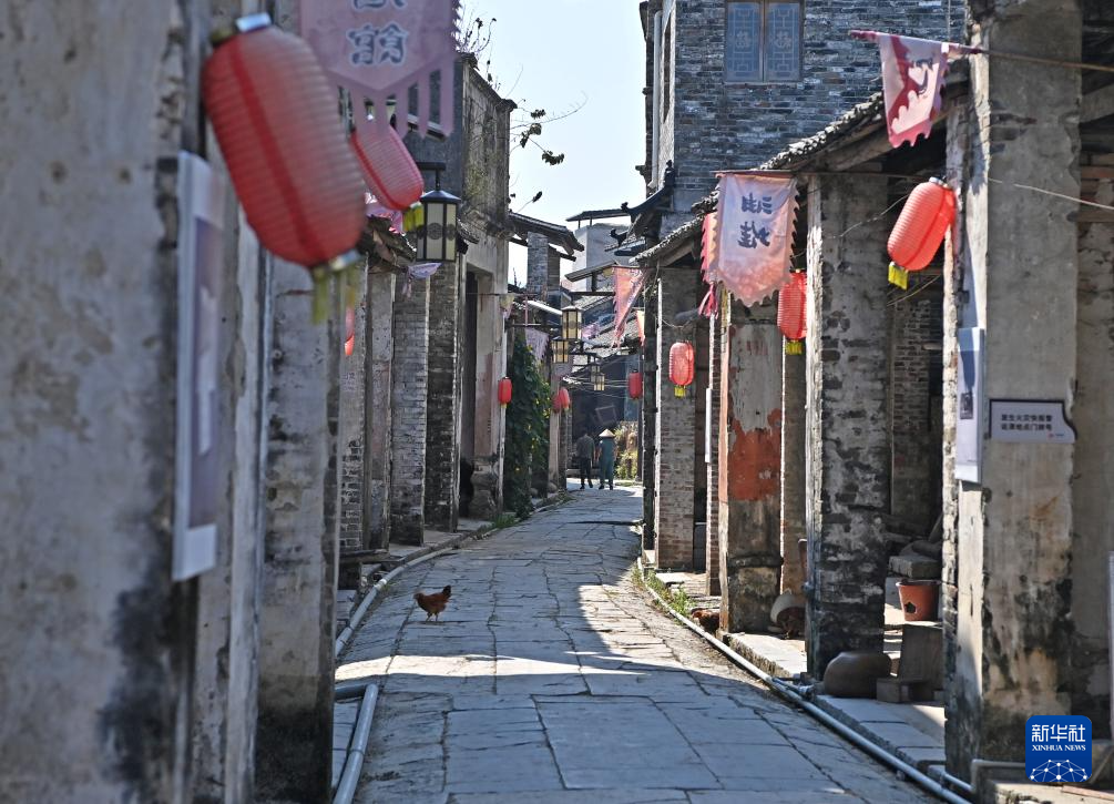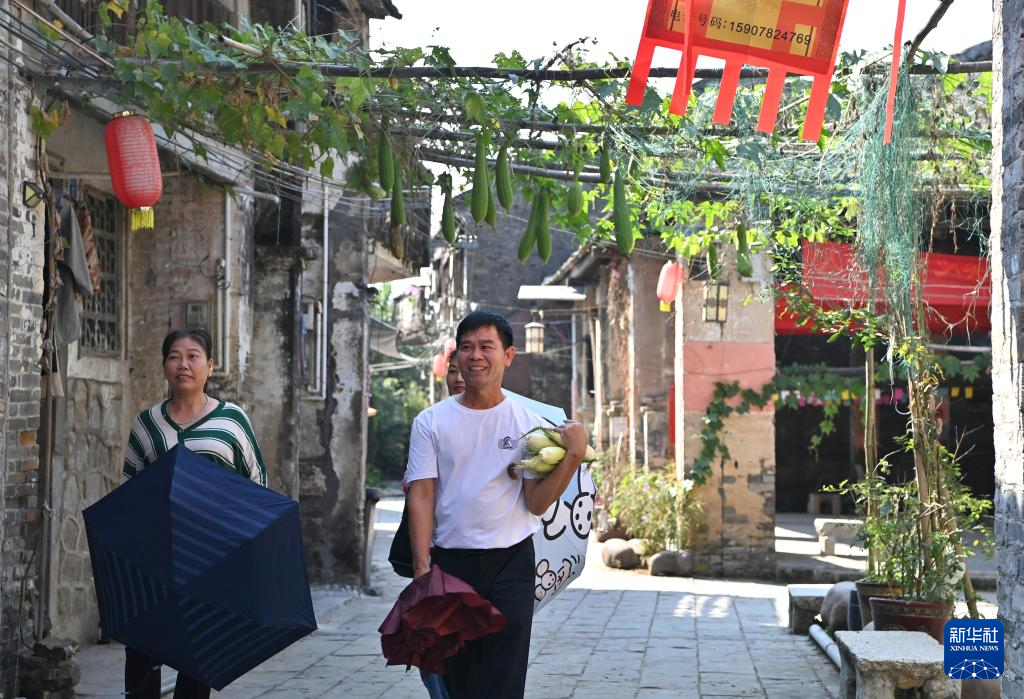 居民推车走在运江古镇的老街上(10月11日摄)。