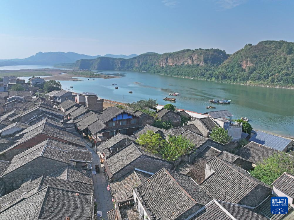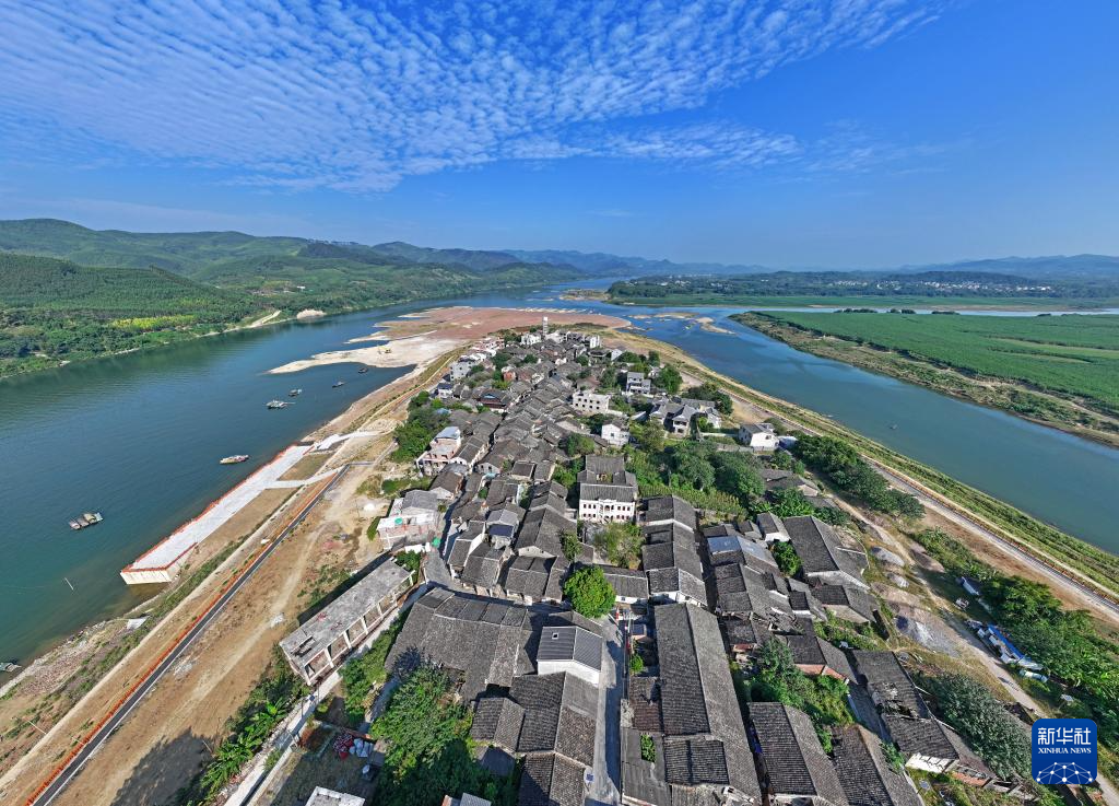 广西来宾市象州县运江镇运江社区运江古镇(10月11日摄,无人机照片)。