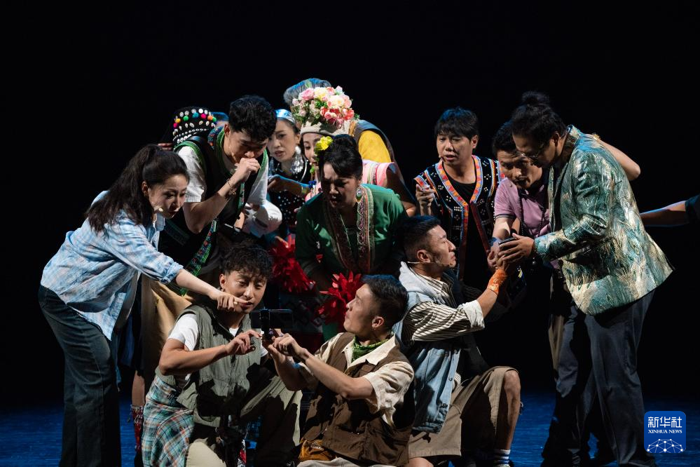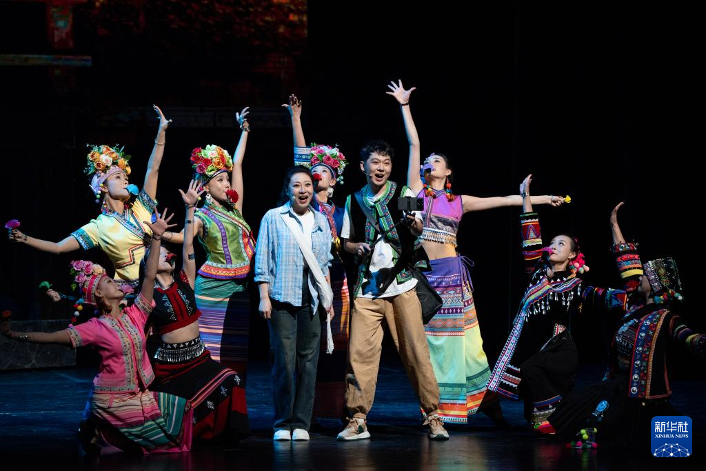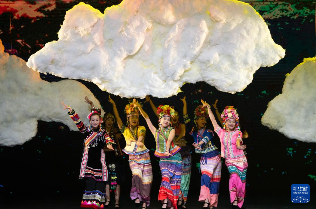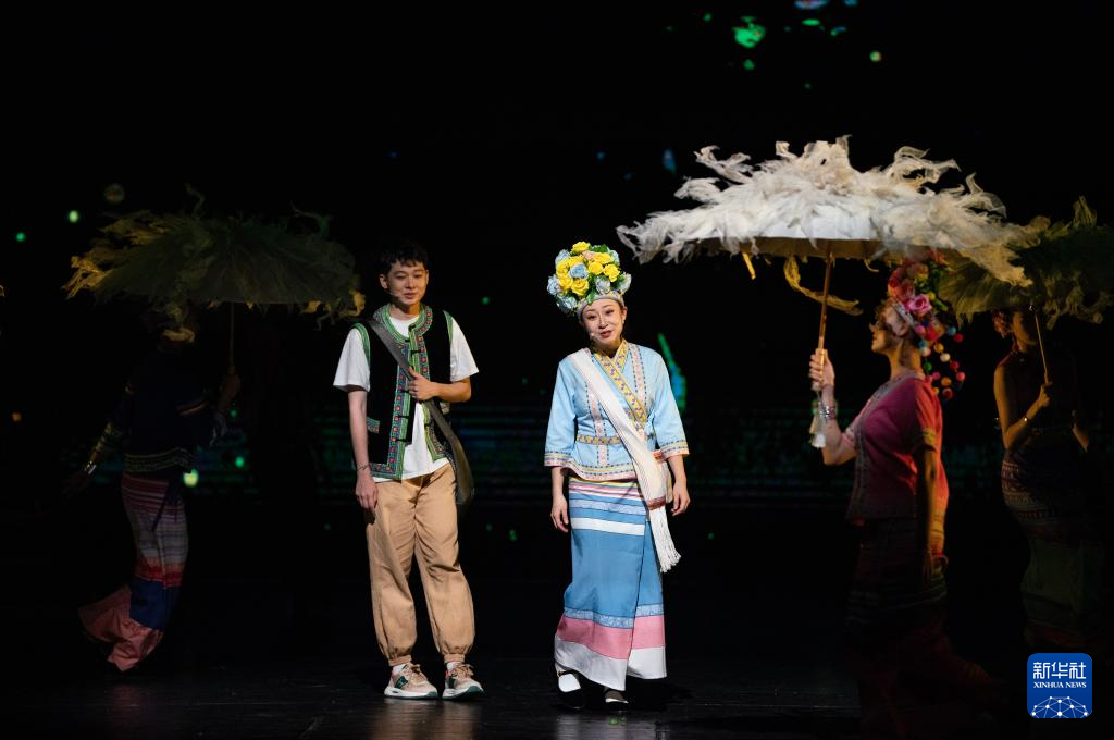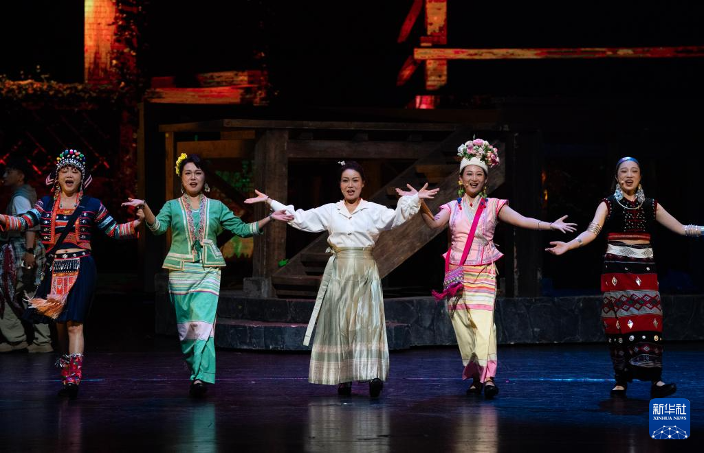 10月18日晚,演员在云南省大剧院表演音乐剧《景迈有嘉木》。