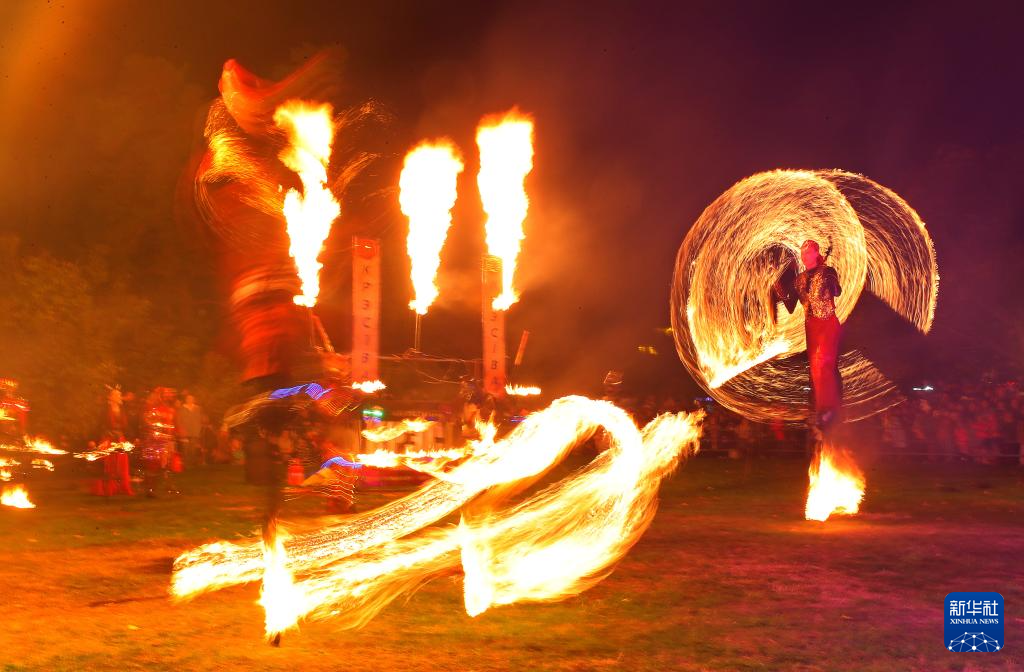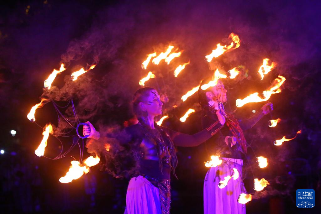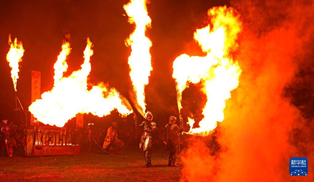 当日,“凤凰”火焰表演艺术节在白俄罗斯首都明斯克植物园举行。来自白俄罗斯各地的30多名火焰表演艺术家为观众呈现了精彩的火焰表演。