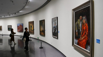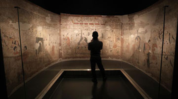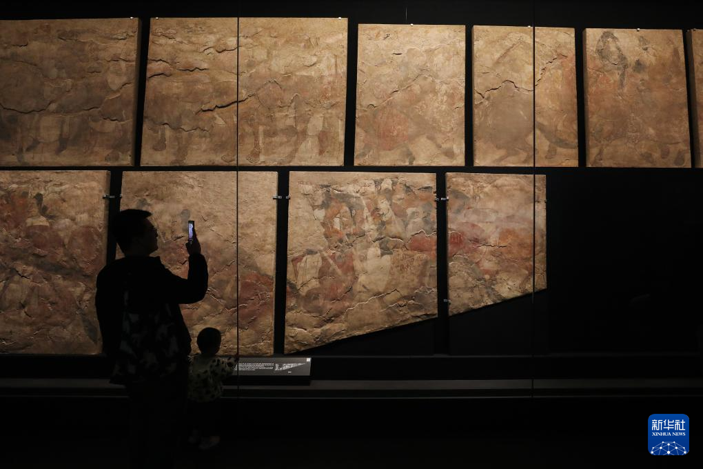 10月29日,观众在太原北齐壁画博物馆体验互动项目。