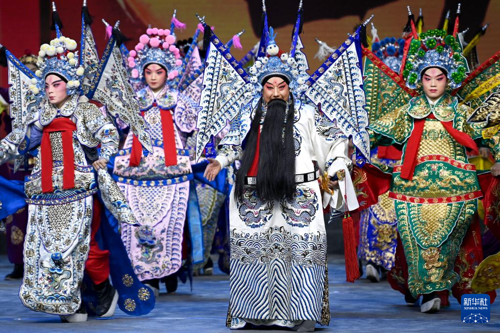 11月1日,演员在第十届秦腔艺术节开幕式上表演秦腔传统戏《满江红》。