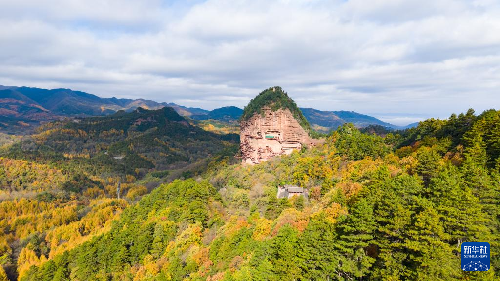 这是11月2日拍摄的麦积山石窟全景(无人机照片)。