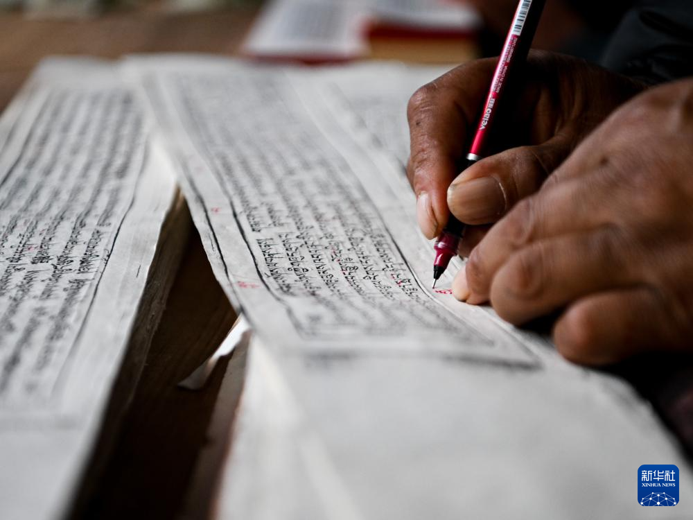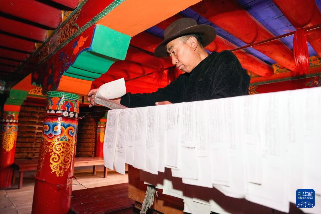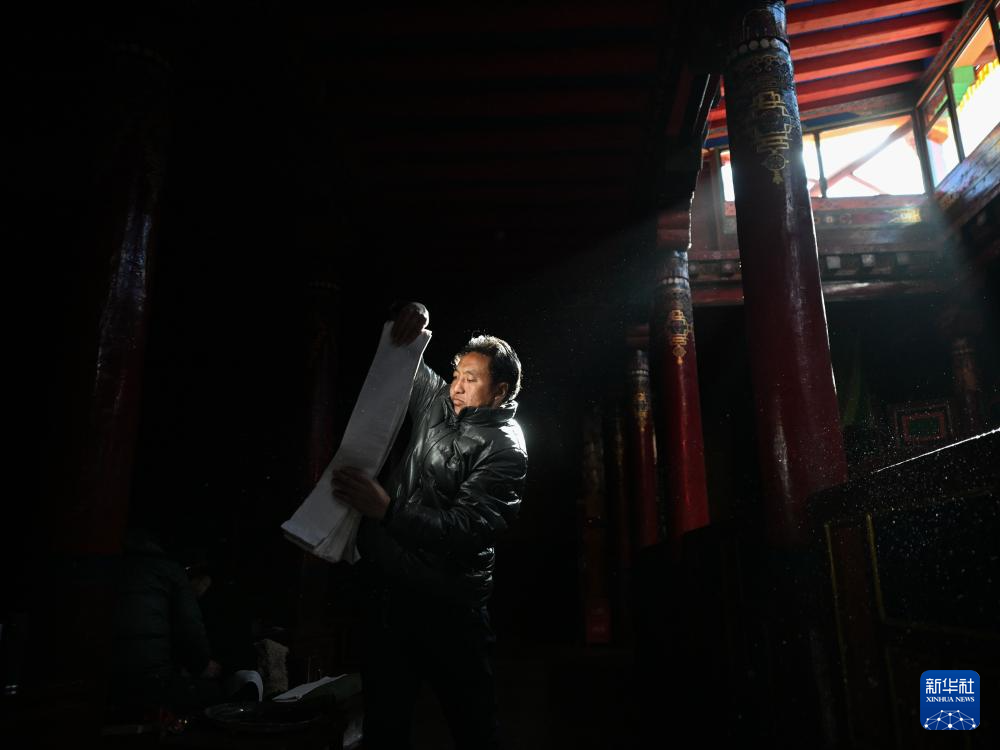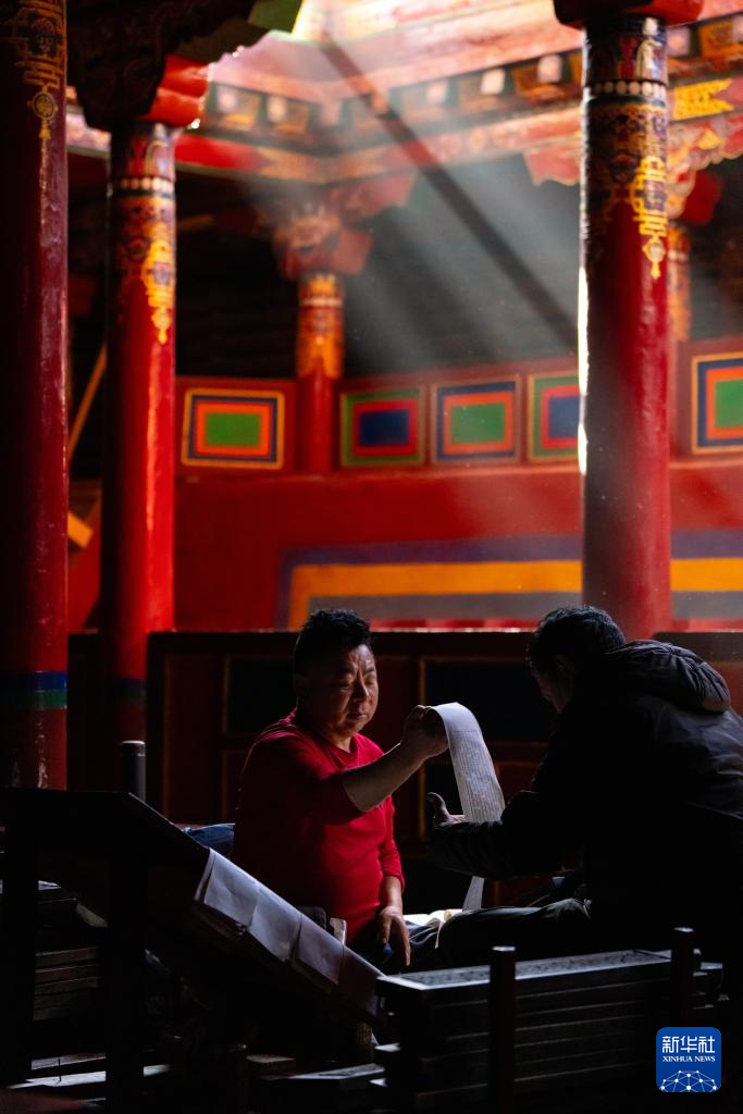 11月2日,德格印经院的工人在校对刚印完的印刷品。