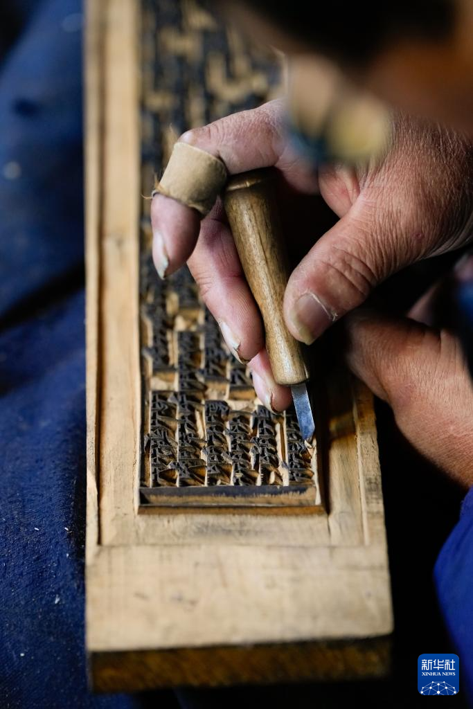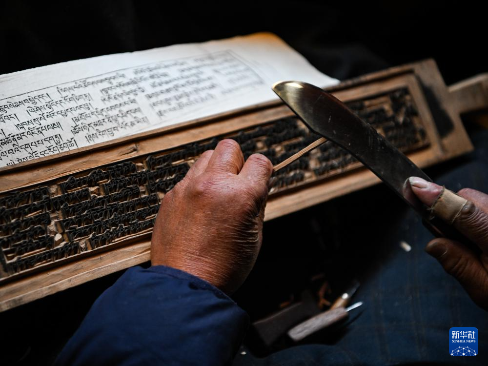 11月2日,在德格印经院,工人在制作院藏印版。