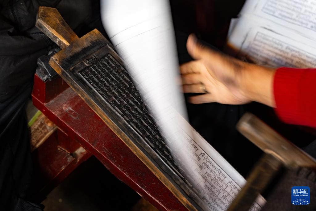 11月2日,德格印经院的工人使用院藏印版印刷。