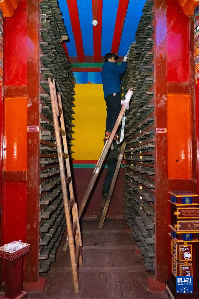 11月2日,德格印经院的工人在检查院藏印版。